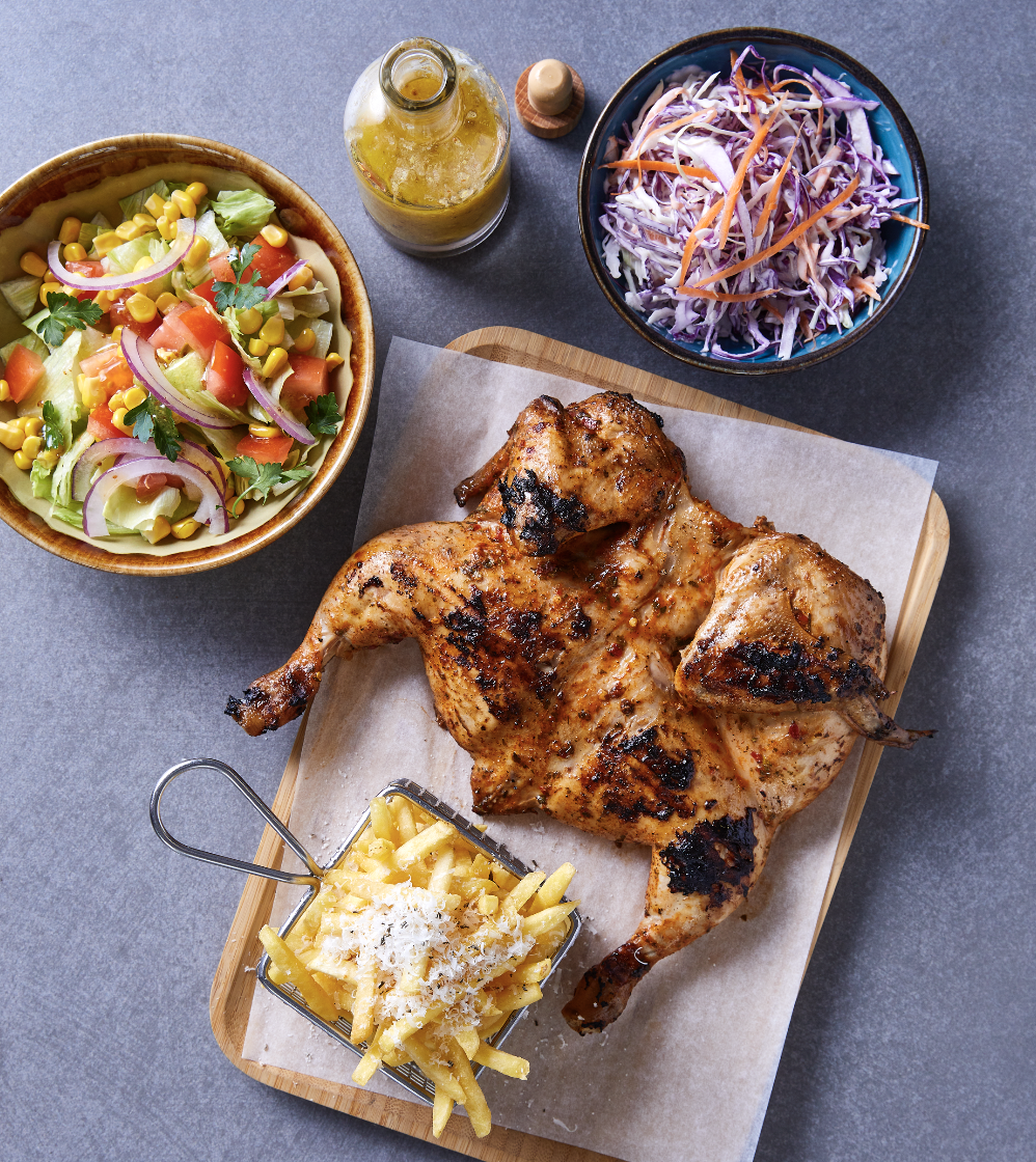 A whole flame-grilled chicken marinated in Bravo’s signature spice blend. Serves 2–3.